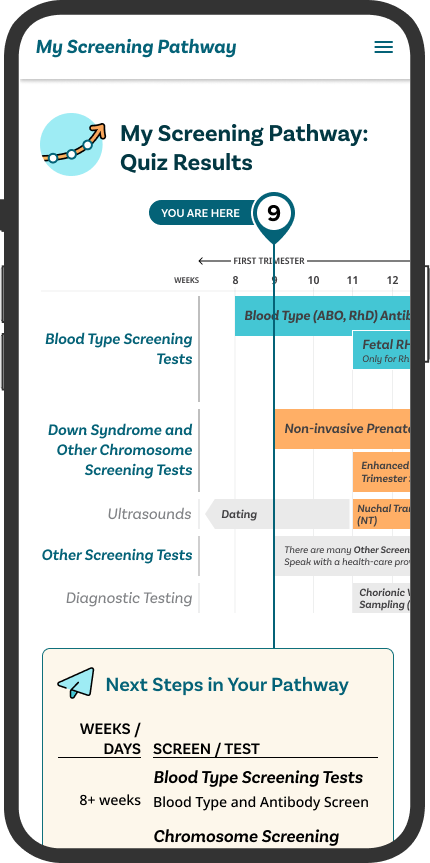 Prenatal Screening Ontario’s My Screening Pathway has been designed to help pregnant people in Ontario by providing information about screening and a timeline of screening options.